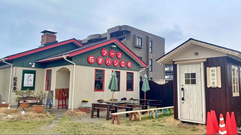 JR岡崎駅の西側、閑静な住宅街の一角にあるパン屋「石窯パン工房 プース」。絵本に出てくるようなかわいらしい外観が特徴です。プースでは、石臼で麦を挽くための「粉挽小屋」があり、鮮度の高い小麦を使用しています。
