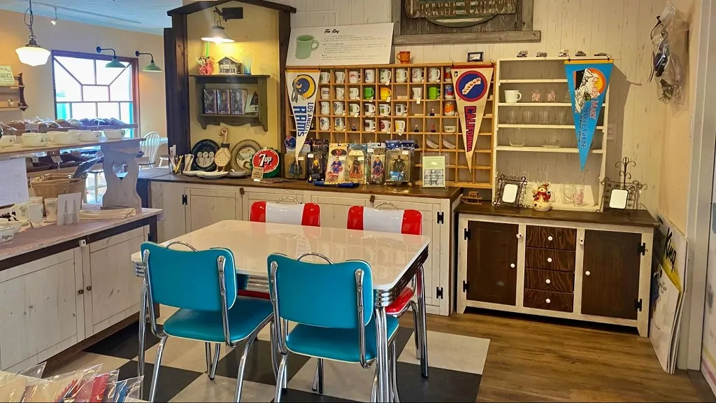 さらに、ベーカリーコーナーの奥には雑貨が置かれており、FireKingのヴィンテージマグをはじめアメリカのさまざまなグッズを販売しています。アメリカンダイナーのようなスペースは、その場にいるだけでもワクワクできる空間。